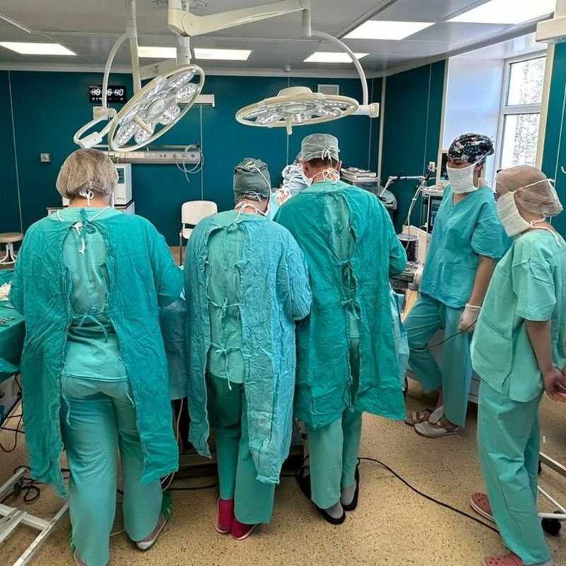 Специалисты зашили рану на работающем сердце и устранили риск кровотечения. Гемодинамика была восстановлена. Продолжительность операции составила 1 час 15 минут.