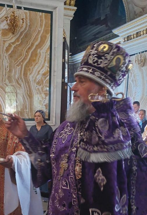 13 августа 2023г. накануне праздника Происхождения (изнесения) Честных Древ Животворящего Креста Господня, Празднества Всемилостивому Спасу и Пресвятой Богородице, а также дня памяти Семи мучеников Маккавеев: Авима, Антонина, Гурия, Елеазара, Евсевона, Алима и Маркелла, матери их Соломонии и учителя их Елеазара, митрополит Уфимский и Башкортостанский НИКОН возглавил торжественное богослужение с выносом Креста и поклонение ему по чину Крестопоклонной Недели. Владыке сослужило соборное духовенство.