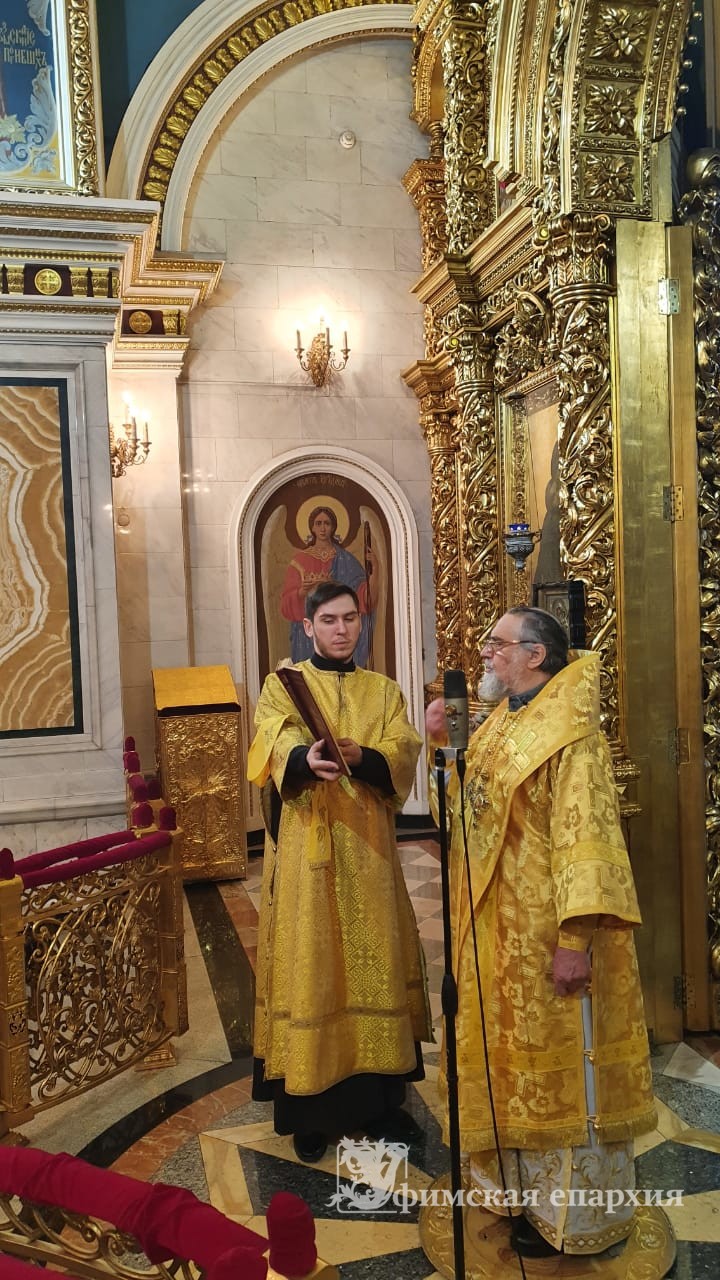 26 февраля 2023г. в Неделю сыропустную, воспоминание Адамова изгнания, Прощеное воскресенье, митрополит Уфимский и Башкортостанский НИКОН возглавил Божественную литургию в кафедральном соборе Рождества Богородицы. Владыке сослужило соборное духовенство. Диаконский чин возглавил соборный протодиакон Максим Коробицын. Пел хор под управлением З.Закировой.