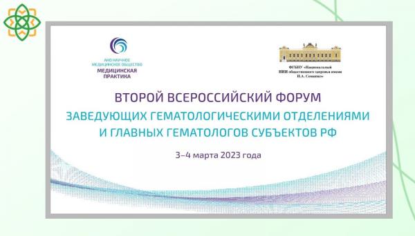 3 и 4 марта 2023 г. в Москве проходит Второй Всероссийский Форум заведующих гематологическими отделениями и главных гематологов субъектов РФ,